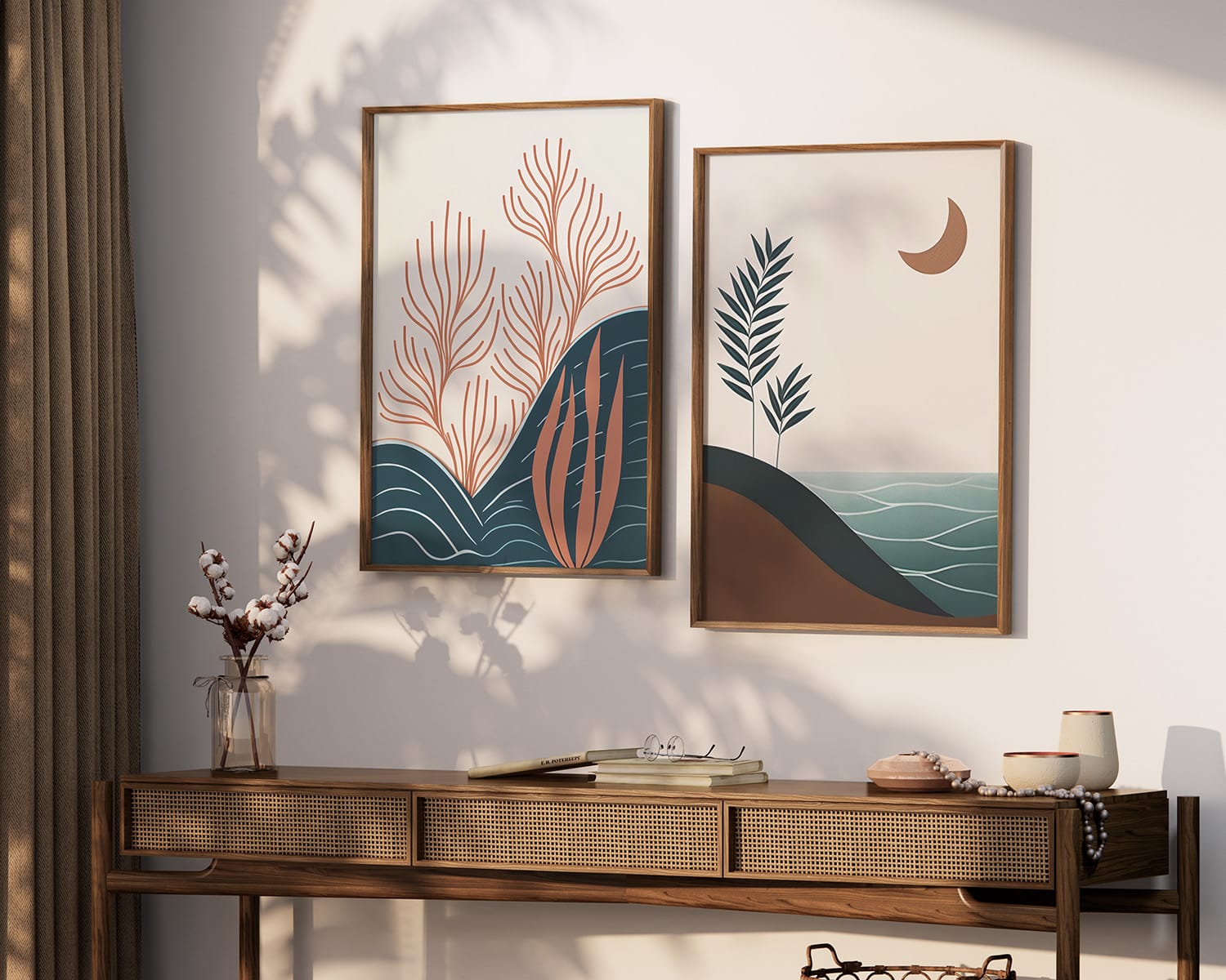 הפוסטר הזה אלמוגים וגלים בעיצוב בוהו שיק מושלם לתלייה בסלון או בחדר שינה. אפשרות לפוסטר בודד או לפוסטר ממוסגר מראש במסגרות איכותיות בהכנה אישית!