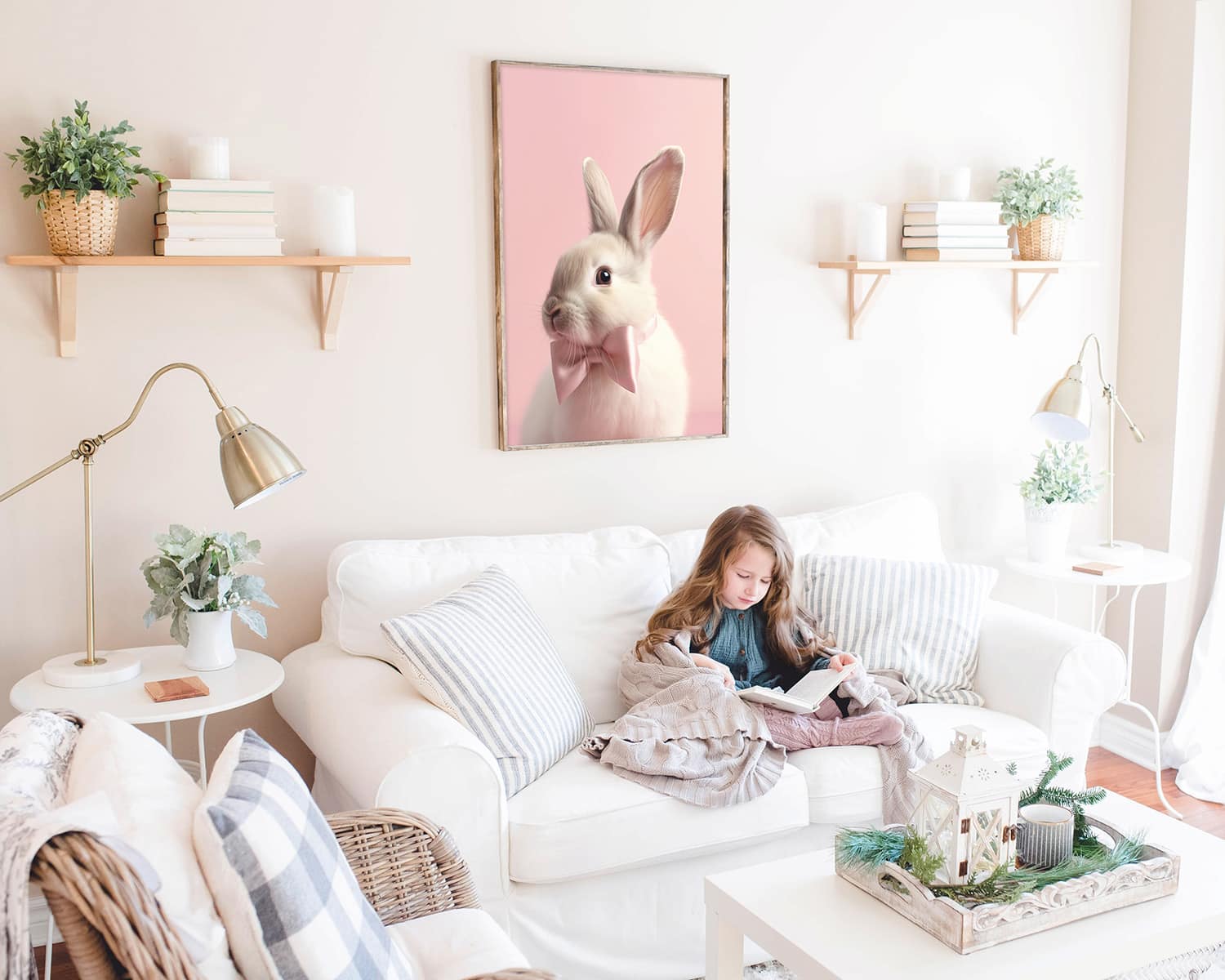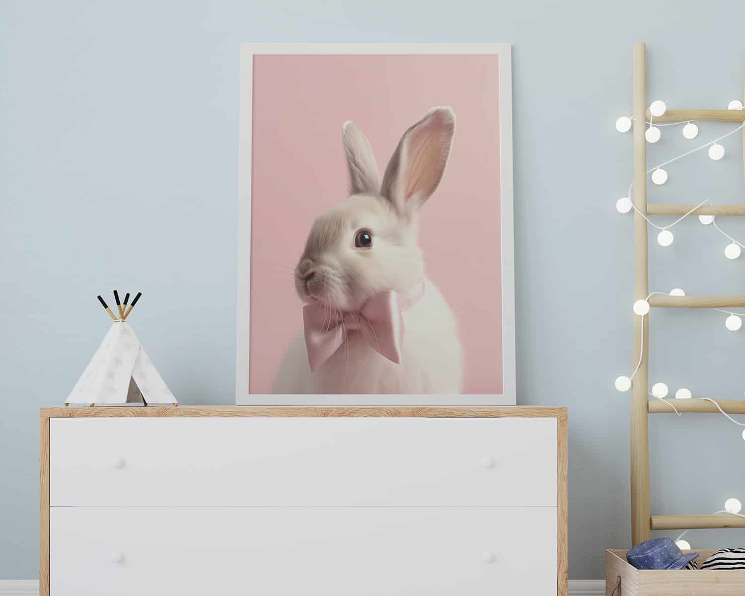 הפוסטר הזה של ארנבון מתוק מושלם לחדר של ילדה שאוהבת ורוד ובעלי חיים. אפשרות לפוסטר בודד או לפוסטר ממוסגר מראש במסגרות איכותיות בהכנה אישית!