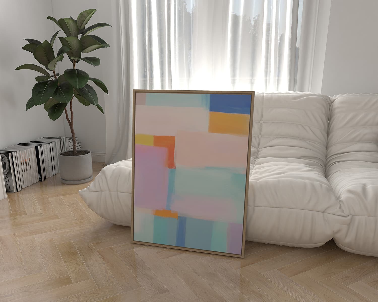 תמונה לחדר שינה בסגנון אבסטרקט ריבועים קולור בלוק בצבעי פסטל א'