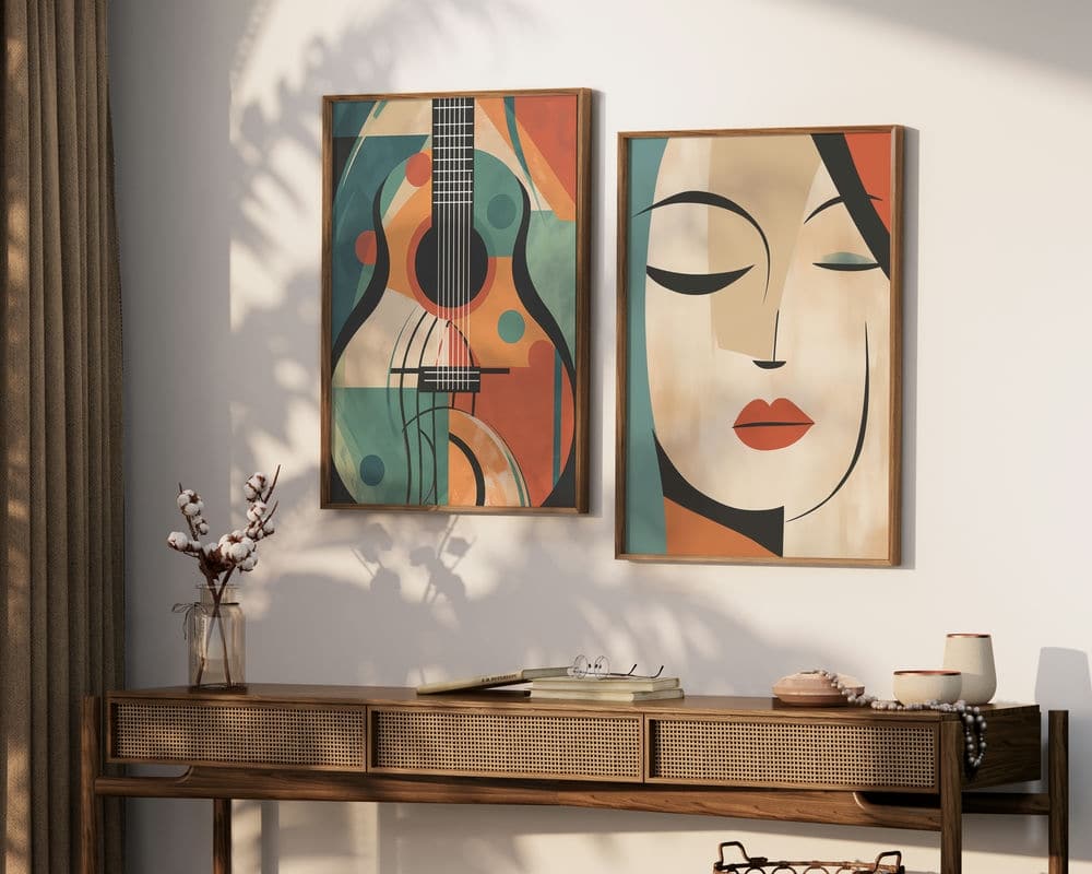 החל מ: 173.70 ₪תמונה לסלון בסגנון מודרני גיטרה אבסטרקטית בגווני כתום וירוק