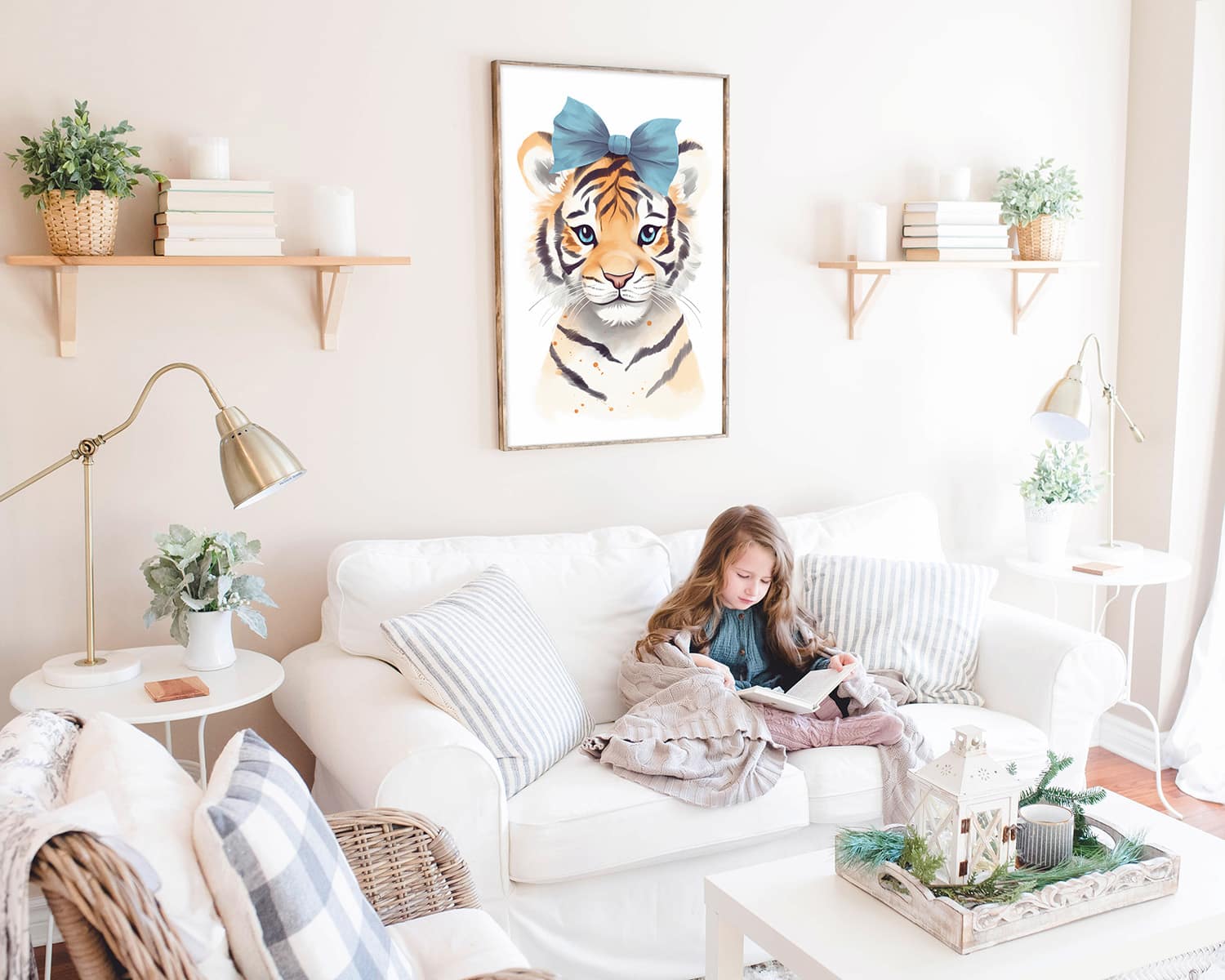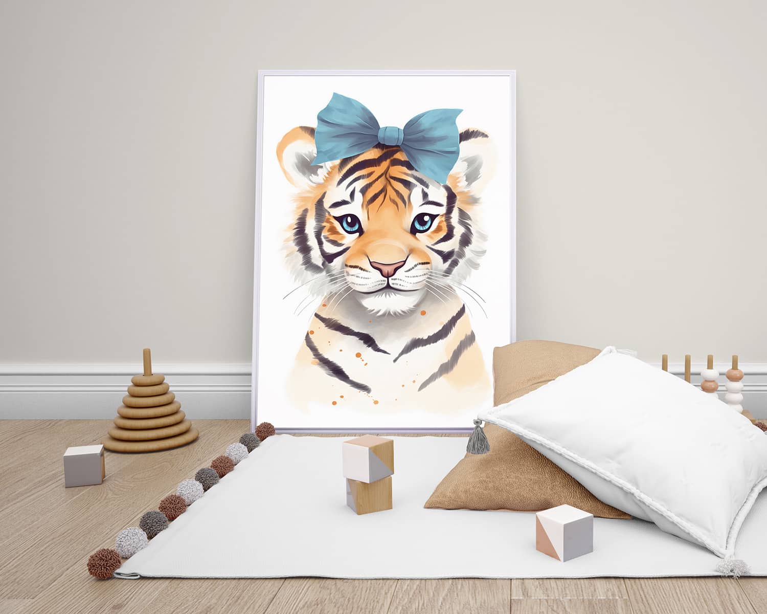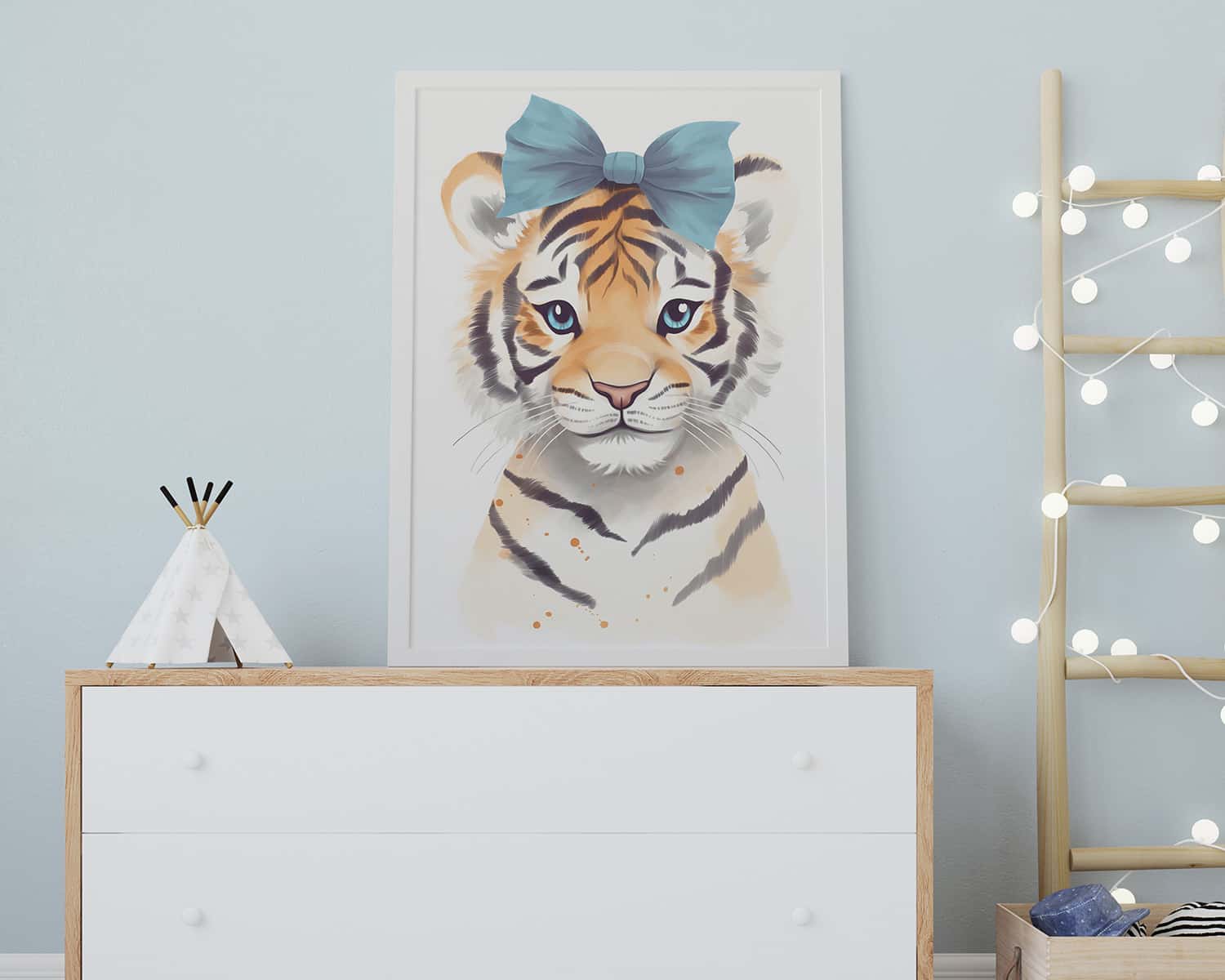 הפוסטר הזה של טיגריס על פפיון תכלת מתאים לחדר תינוקות ליצירת האווירה המושלמת. אפשרות לפוסטר בודד או לפוסטר ממוסגר מראש במסגרות איכותיות בהכנה אישית!