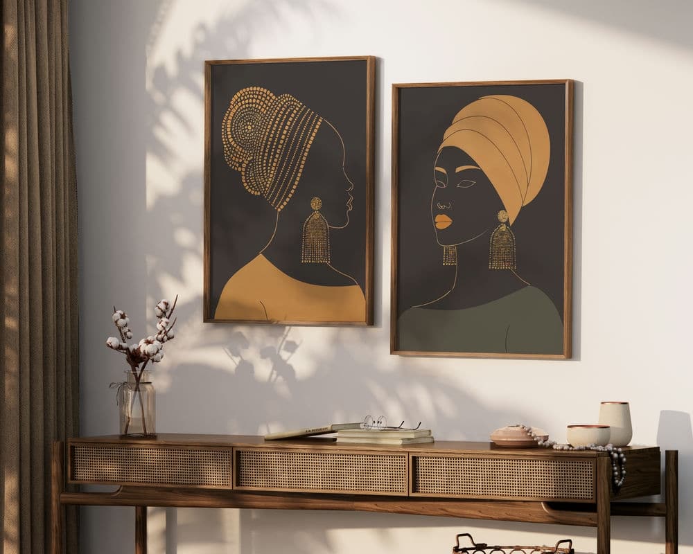 סט 2 תמונות לסלון בסגנון מינימליסטי נשים עם עגילים ומטפחת