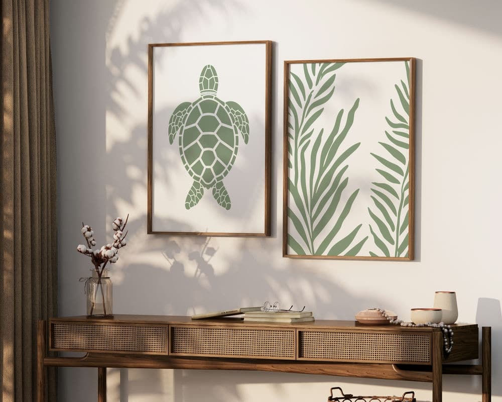 סט 2 תמונות לסלון בסגנון מינימליסטי צב ים ואצות
