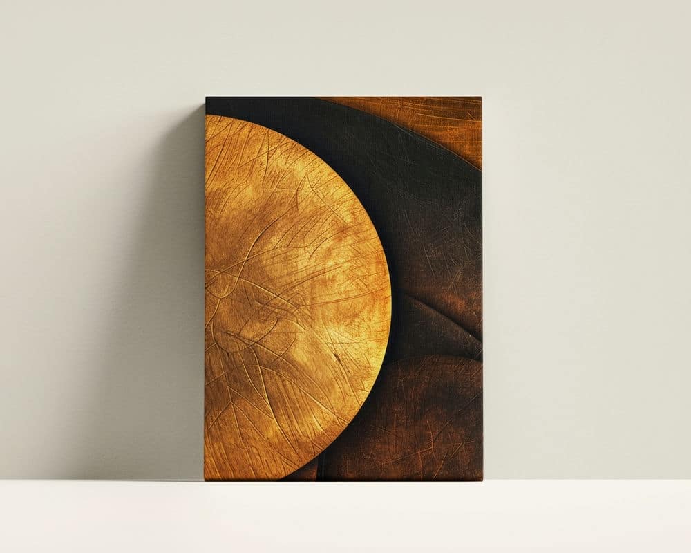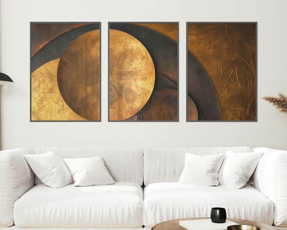 סט 3 תמונות לסלון עיגולים זהובים בסגנון אבסטרקט