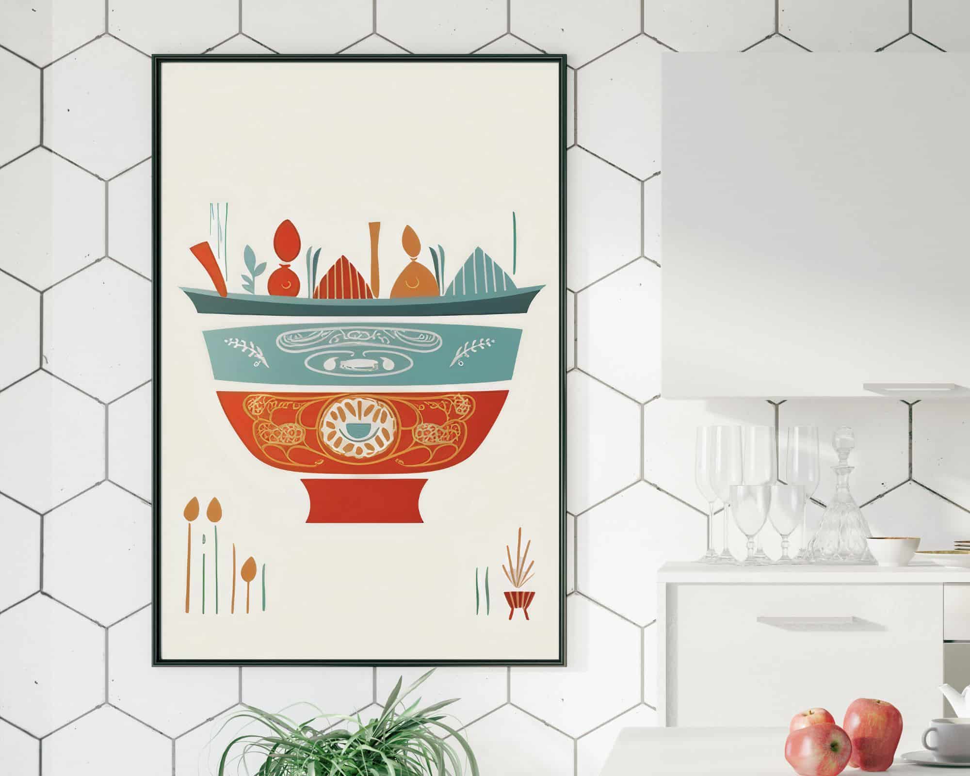 הציור הזה של סיר מקושט עם ירקות יתאים לכל מטבח ולפינת אוכל שחסר בו קצת צבע על הקיר. אפשרות לפוסטר בודד או לפוסטר ממוסגר מראש במסגרות איכותיות בהכנה אישית!