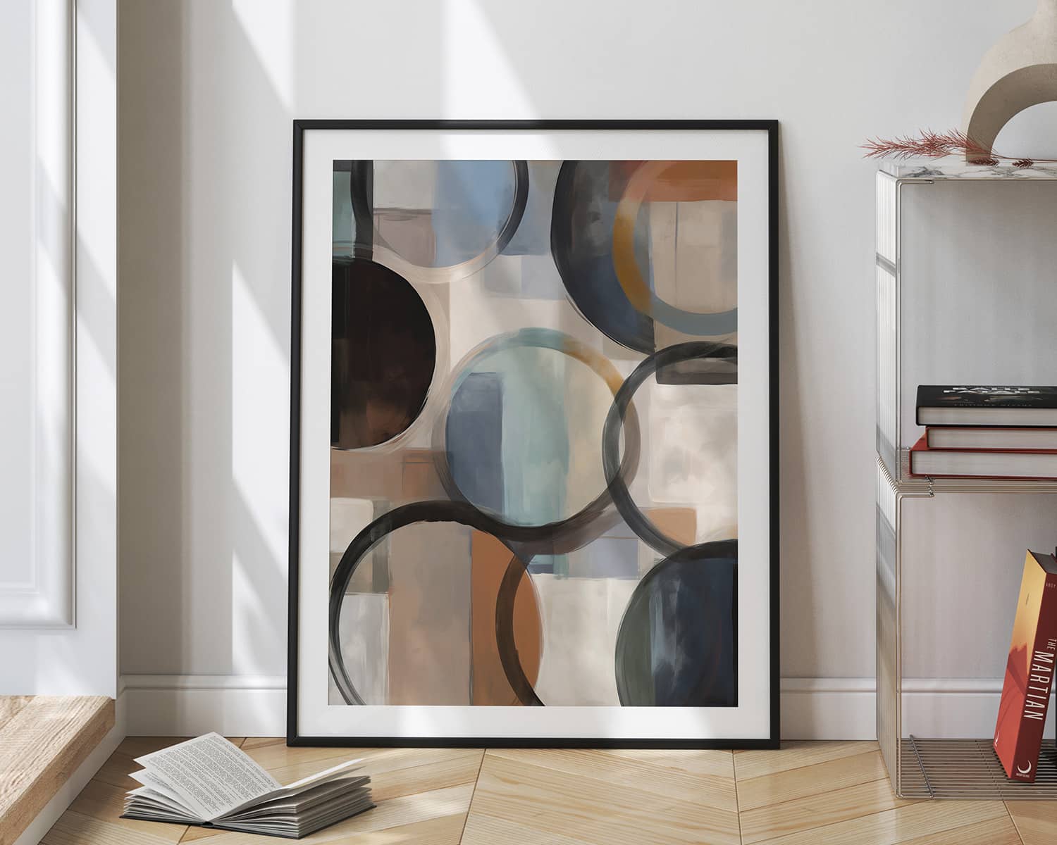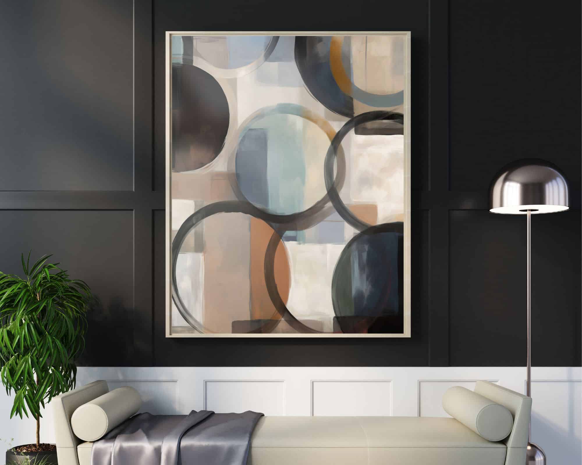 תמונה למשרד בסגנון אבסטרקט עיגולים בגווני חום בז' וכחול