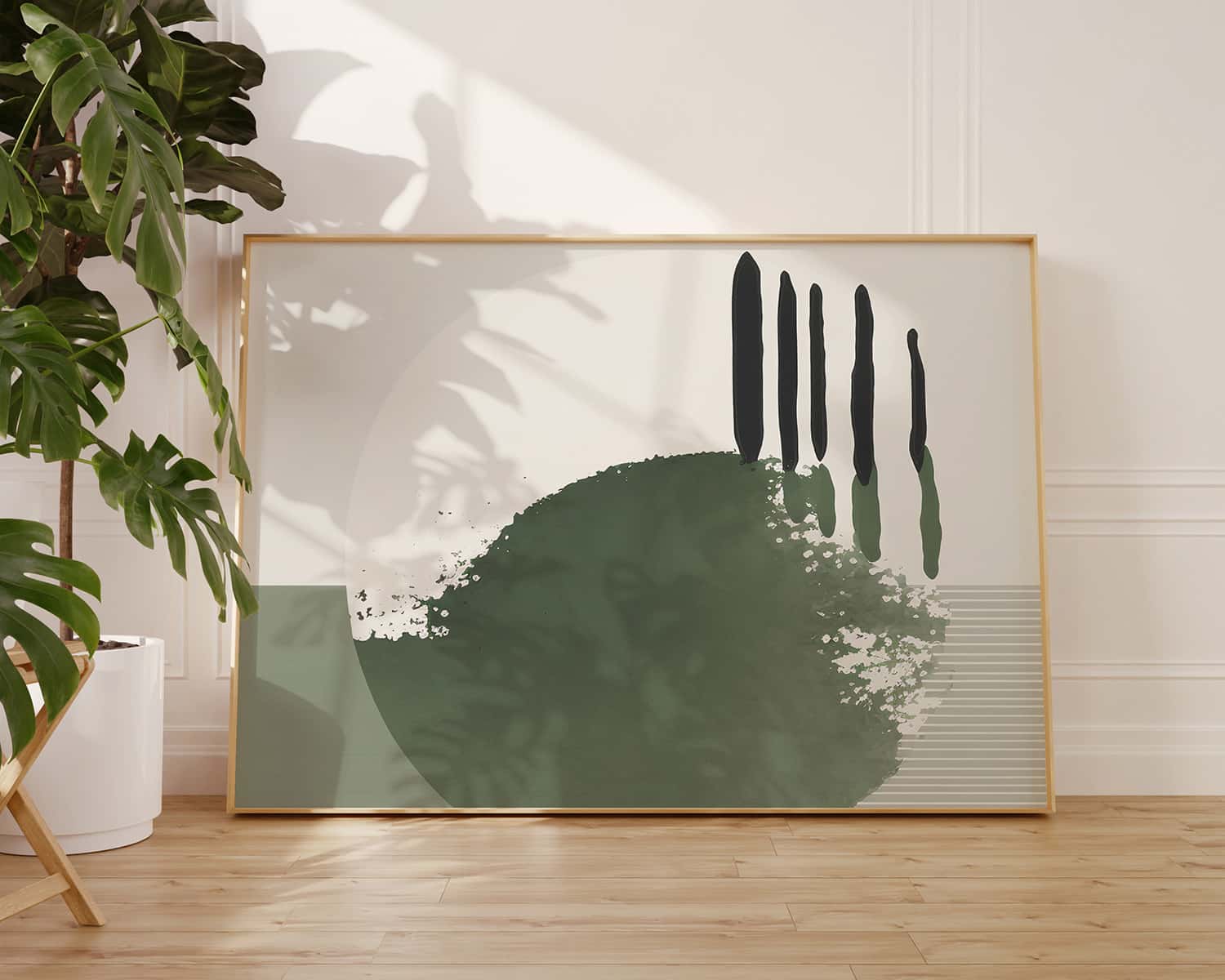 הפוסטר המינימליסטי הזה בגוונים של ירוק מושלם לחלל הריק מעל המיטה או מעל הספה. אפשרות לפוסטר בודד או לפוסטר ממוסגר מראש במסגרות איכותיות בהכנה אישית!