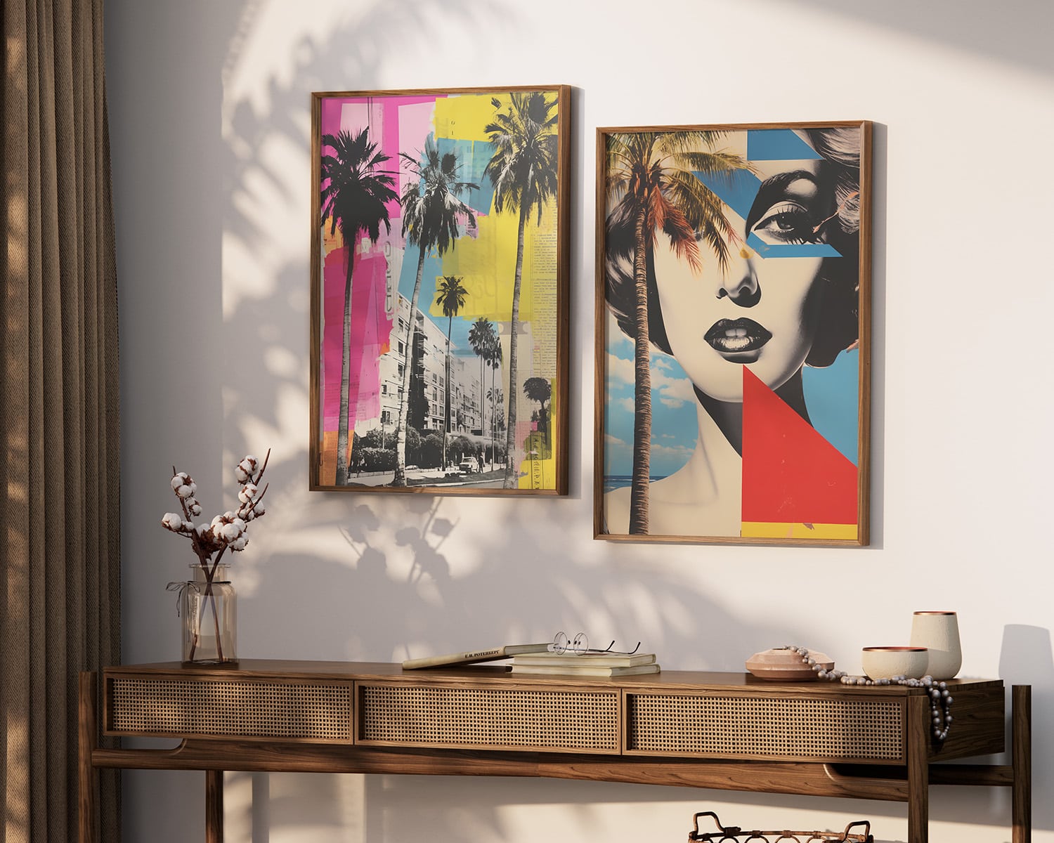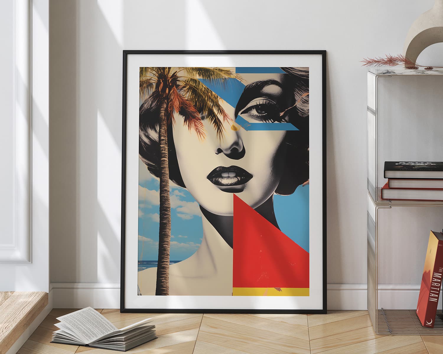 תמונה לפינת אוכל בסגנון רטרו אישה ועץ דקל
