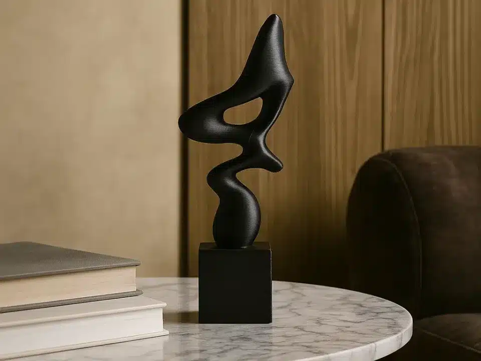 הפסל האבסטרקטי המודרני מציג שילוב מרשים בין אמנות לעיצוב, עם קווים אורגניים זורמים היוצרים תחושת תנועה, איזון והרמוניה. הצורה הפיסולית המתפתלת מושכת את העין מכל זווית ומעניקה עומק ועניין ויזואלי, בעוד הגימור השחור המט מדגיש אלגנטיות שקטה ונוכחות מתוחכמת. הפסל מונח על בסיס יציב שמאזן בין קלילות צורנית ליציבות חומרית, ומשתלב באופן טבעי בסלון מינימליסטי, במשרד מעוצב או בסטודיו יצירתי. זהו פריט דקורטיבי שמוסיף אופי ואמירה עיצובית מבלי להעמיס על החלל, ומתאים במיוחד לאוהבי אמנות מודרנית, חובבי עיצוב נקי ולמי שמחפש אלמנט פיסולי עם נוכחות רגועה ויוקרתית.