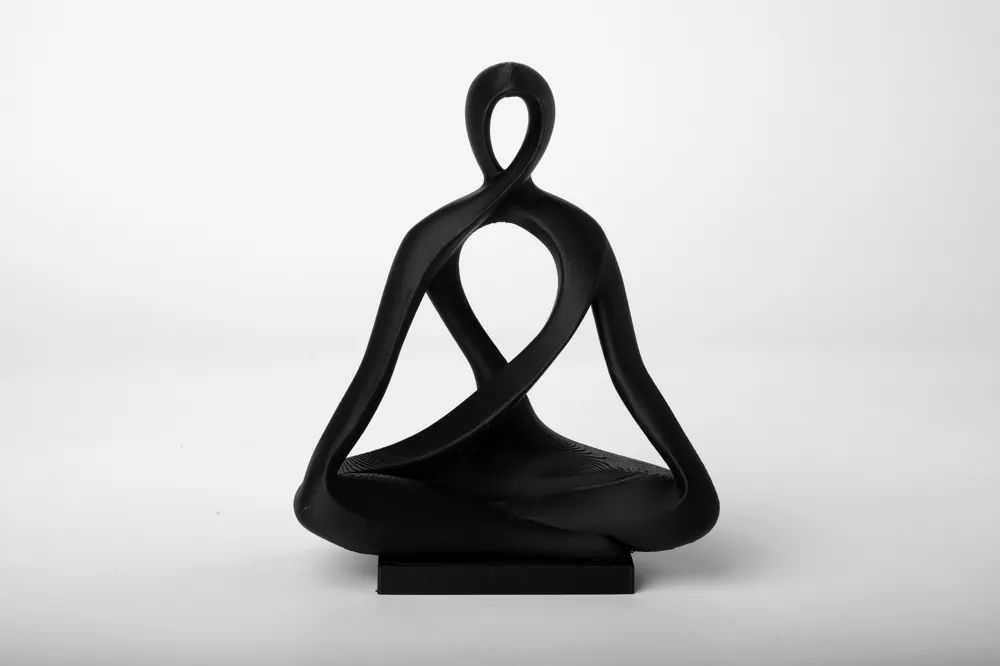 פסל היוגה האבסטרקטי מבטא שלווה, איזון ופשטות באמצעות צורה זורמת ומינימליסטית. הדמות היושבת בתנוחת מדיטציה בנויה מקווים רציפים המתמזגים ללולאה אחת, המסמלת אחדות ורגע של שקט פנימי. הגימור השחור־מט מעניק לו נוכחות מודרנית ואלגנטית.