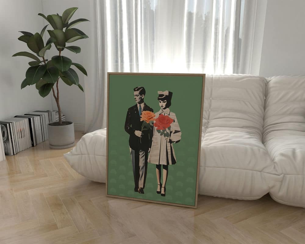 הפוסטר הזה של זוג בסגנון קולאז’ מושלם לתלייה בסלון בתור יצירה יחידה או כאוסף מגלריה. אפשרות לפוסטר בודד או לפוסטר ממוסגר מראש במסגרות איכותיות בהכנה אישית!
