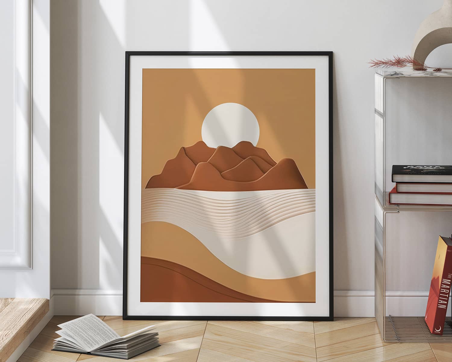 הפוסטר הזה של זריחה מעל הרים מדבריים מושלם לתלייה בכל חלל לאווירה רגועה. אפשרות לפוסטר בודד או לפוסטר ממוסגר מראש במסגרות איכותיות בהכנה אישית!