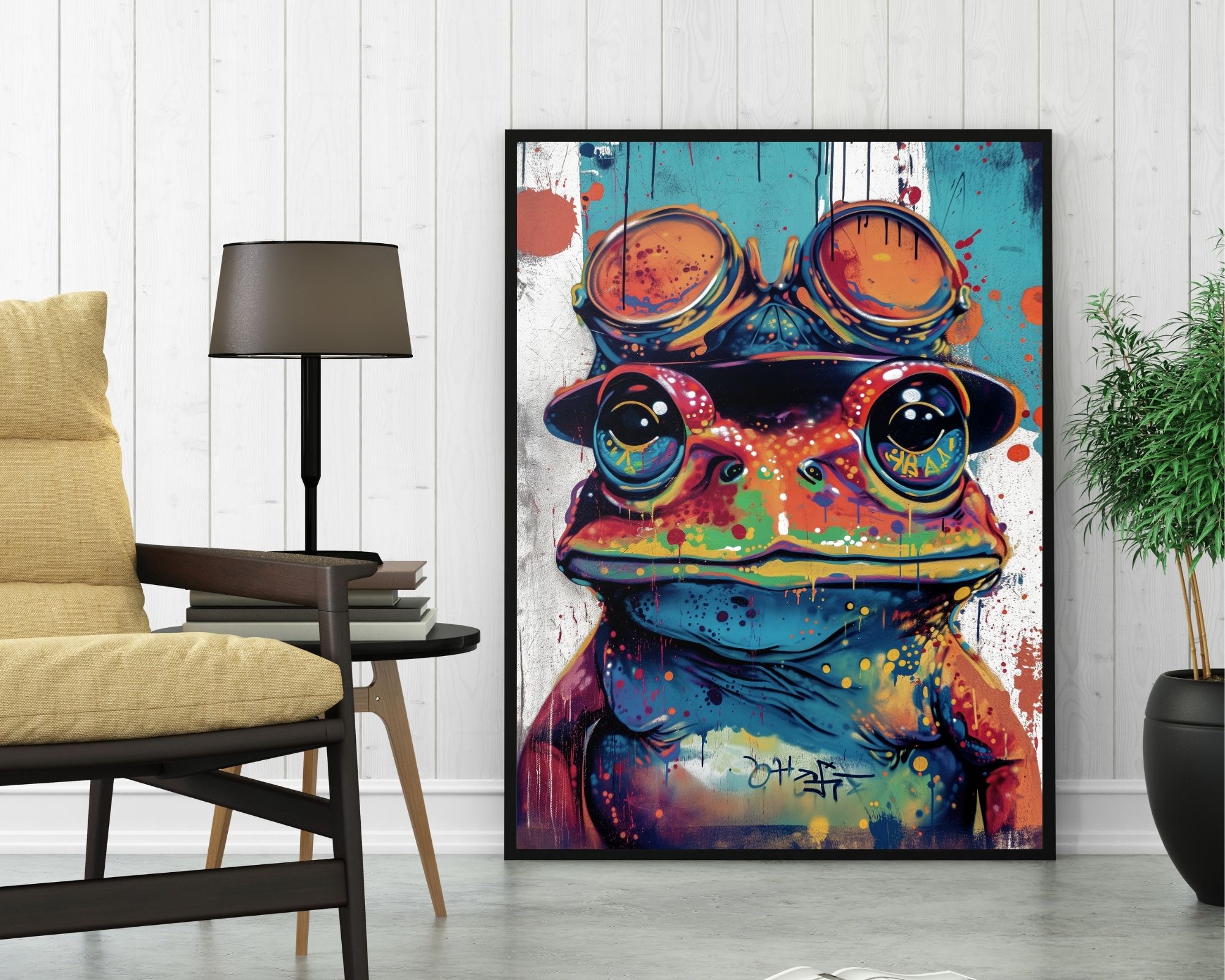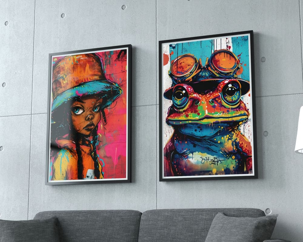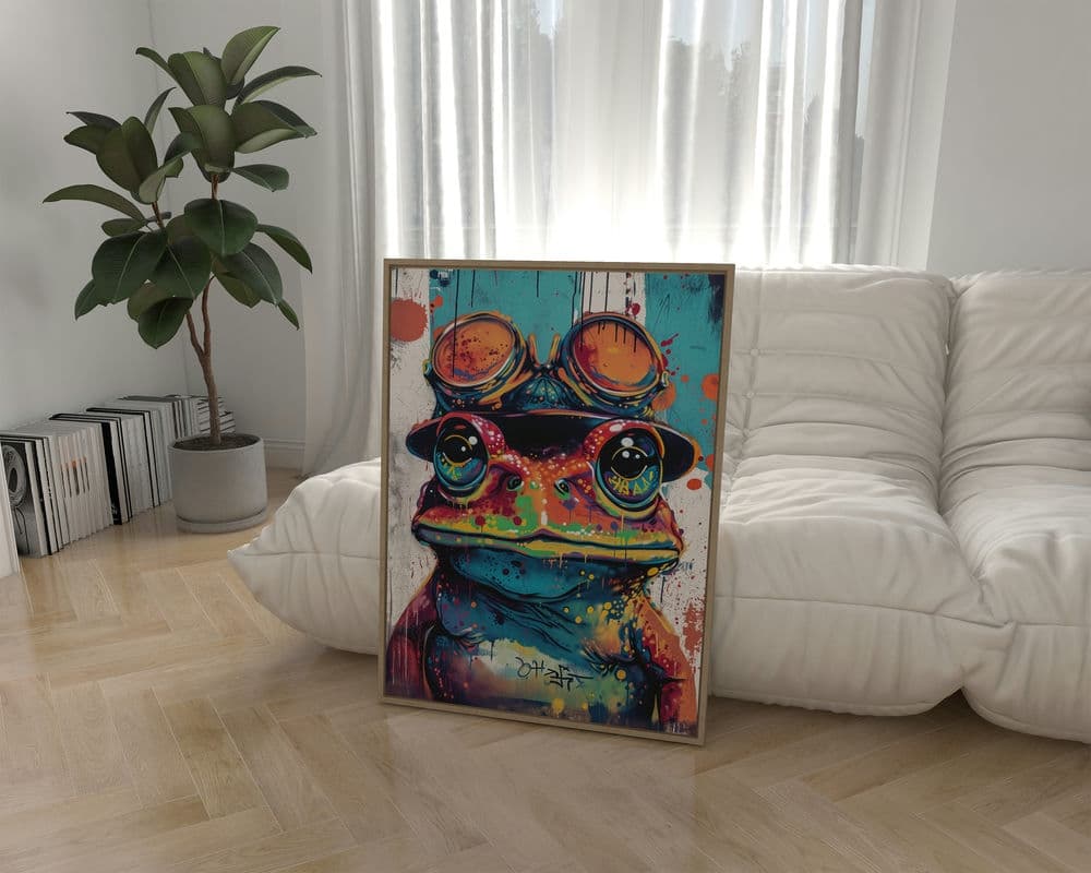 הפוסטר הצבעוני זה בסגנון גרפיטי של צפרדע עם משקפיים וכובע יוסיף אופי וצבע לכל חדר שתרצו. אפשרות לפוסטר בודד או לפוסטר ממוסגר מראש במסגרות איכותיות בהכנה אישית!