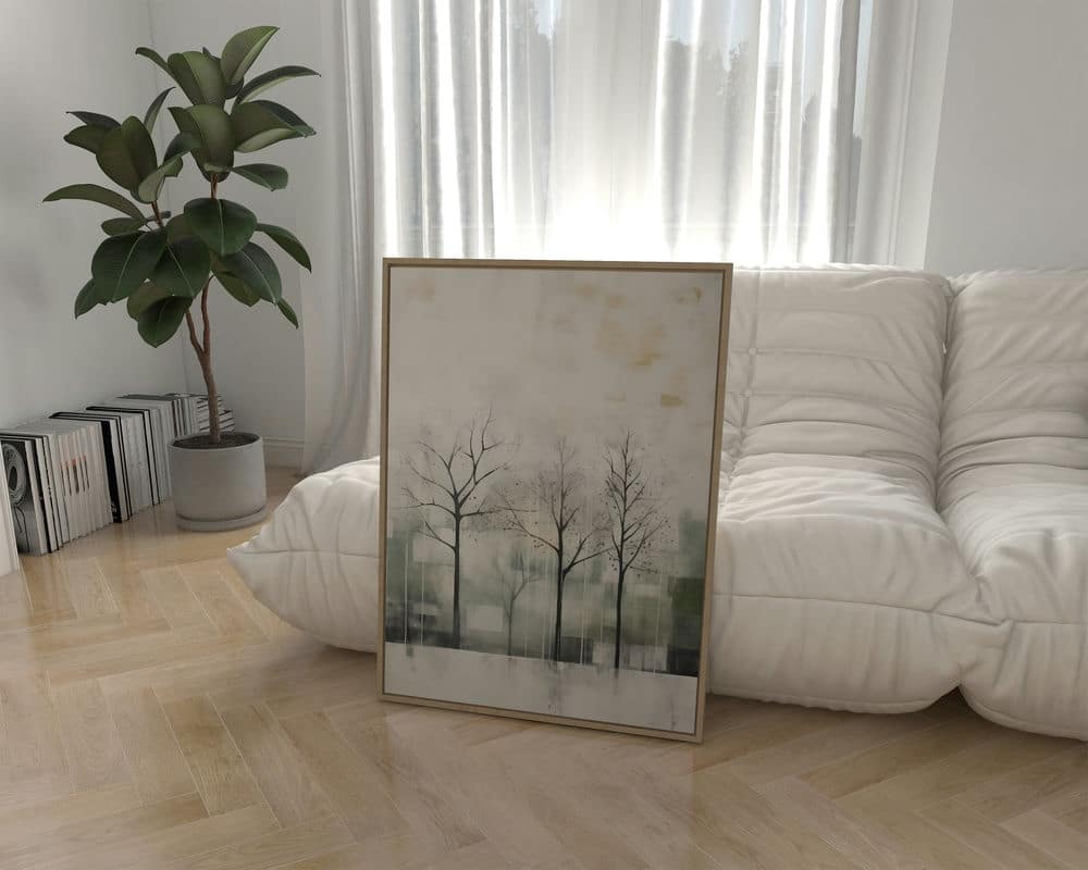 תמונה לחדר שינה בסגנון אבסטרקט שורה של עצים בירוק עדין