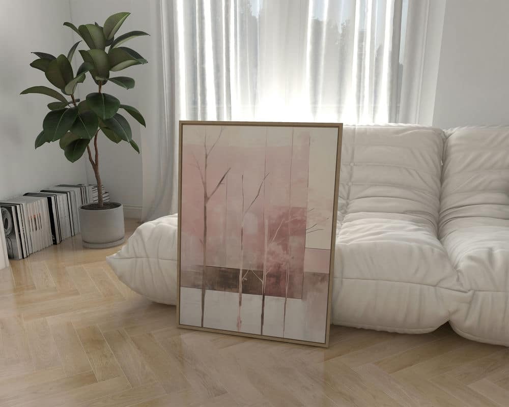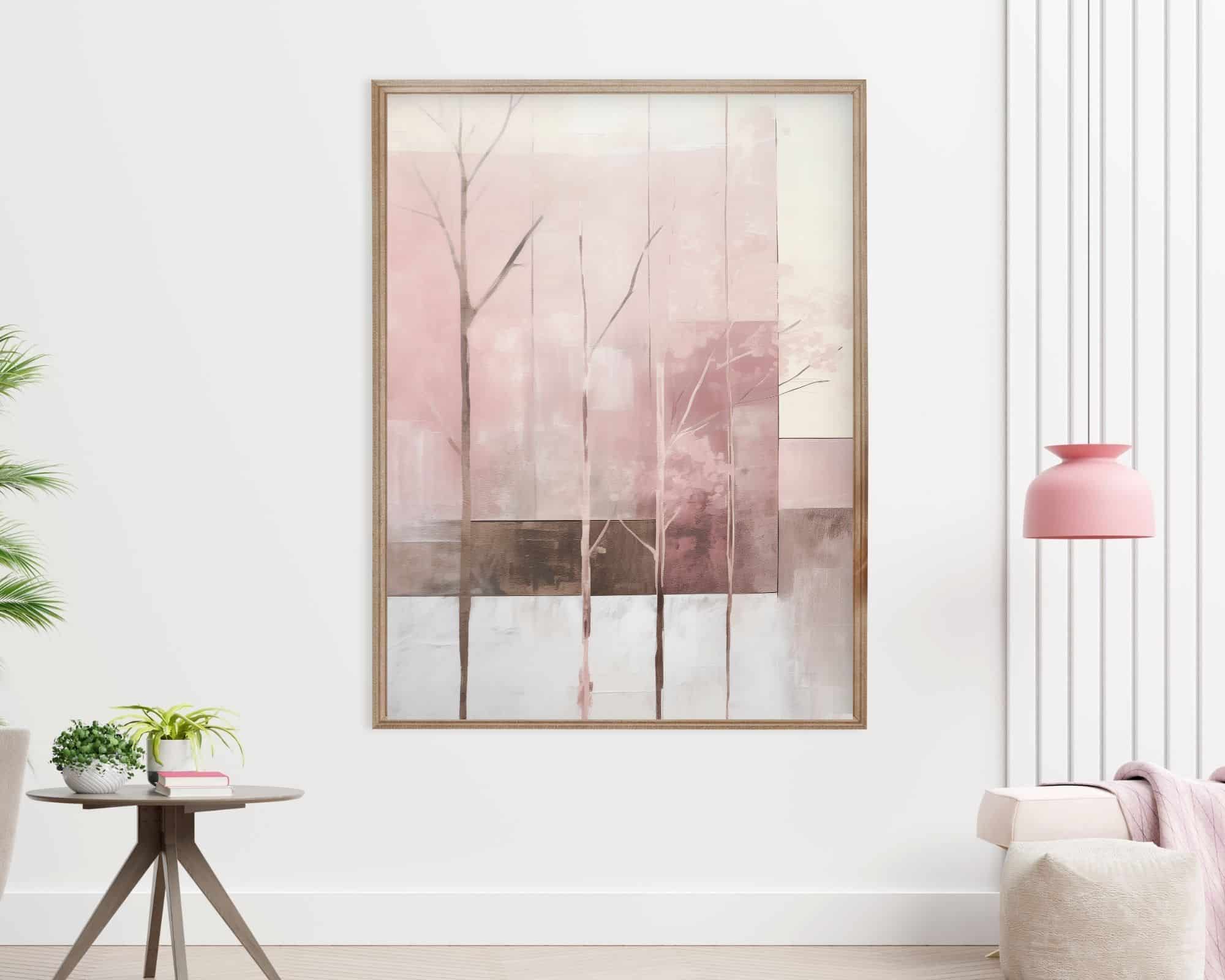 טבע מופשט בגווני ורוד, לבן וחום – תמונת קיר מודרנית