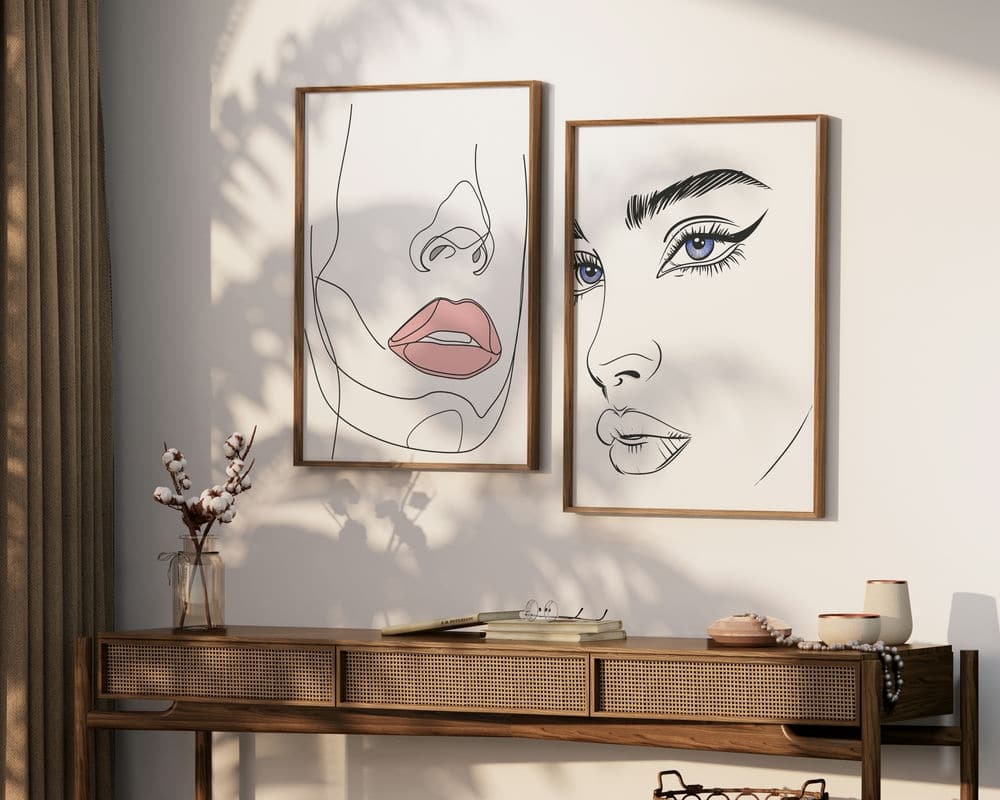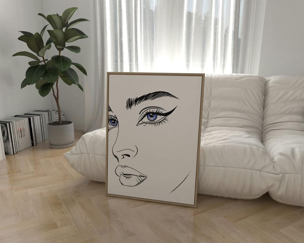 אישה מינימליסטית עם עיניים כחולות תמונת קיר מודרנית