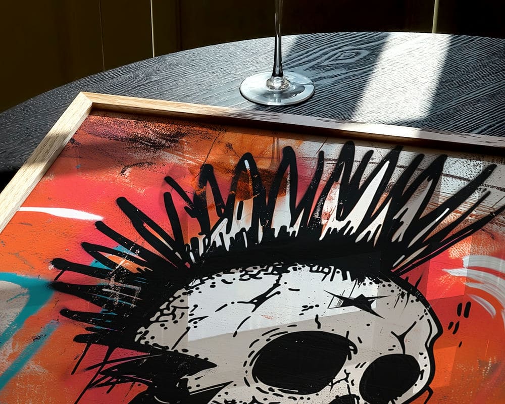 הפוסטר הזה בסגנון גרפיטי של שלד על רקע כתום יראה מצויין תלוי בסלון ויוסיף נגיעת צבע לחלל. אפשרות לפוסטר בודד או לפוסטר ממוסגר מראש במסגרות איכותיות בהכנה אישית!