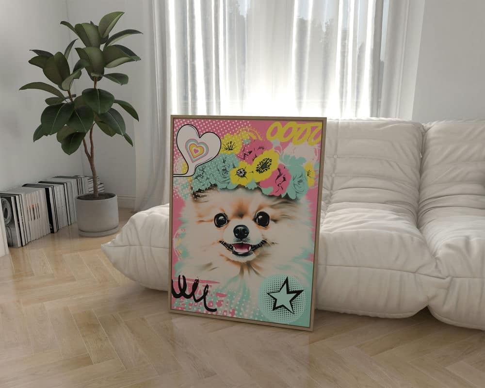 הפוסטר הזה של בסגנון פופ ארט של כלב פומרניין חמוד בצבעים ורוד תכלת ונגיעות צהוב מושלם לכל אוהבי הגזע המתוק הזה. אפשרות לפוסטר בודד או לפוסטר ממוסגר מראש במסגרות איכותיות בהכנה אישית!