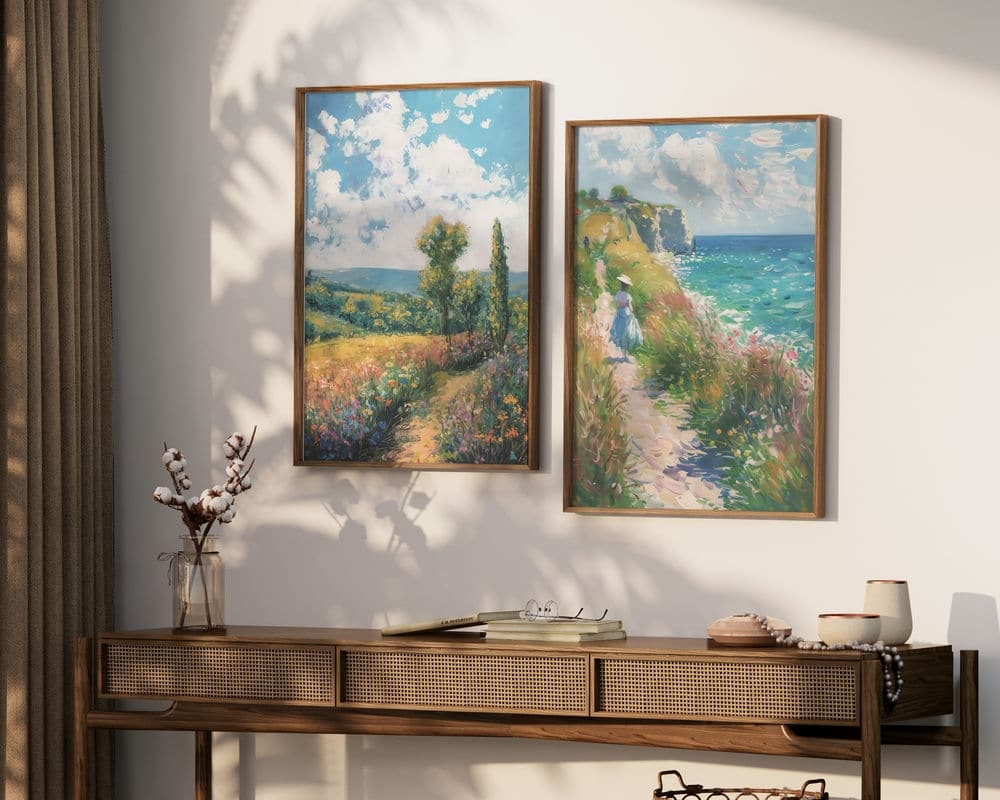 תמונה לפינת אוכל בסגנון ציור וינטג’ אישה בשדה פורח