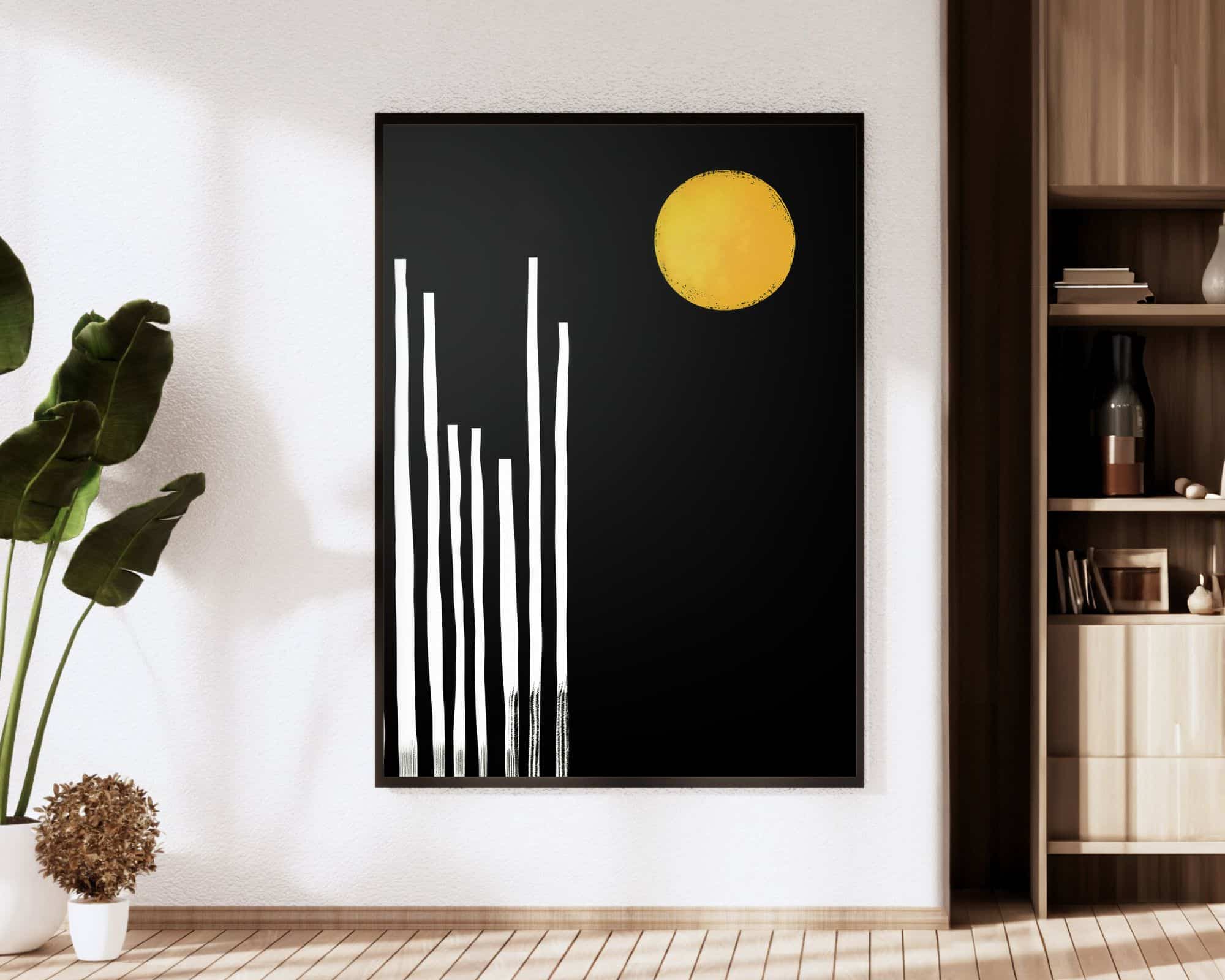 תמונה למשרד בעיצוב מינימליסטי ירח צהוב בשמיים שחורים