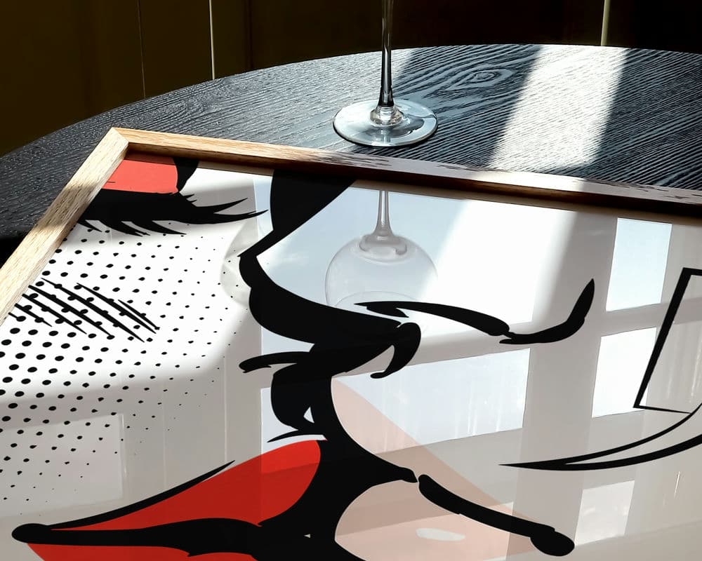 תמונה לסלון מעל הספה בסגנון פופ ארט זוג בנשיקה