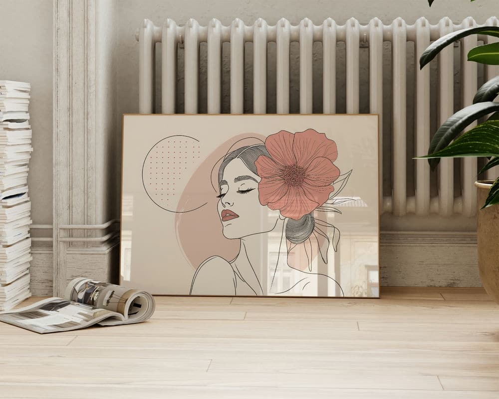 הפוסטר הזה של אישה עם פרח בשיער בעיצוב מינימליסטי מתאים במיוחד לתלייה מעל המיטה ליצירת חדר שינה מהמם. אפשרות לפוסטר בודד או לפוסטר ממוסגר מראש במסגרות איכותיות בהכנה אישית!