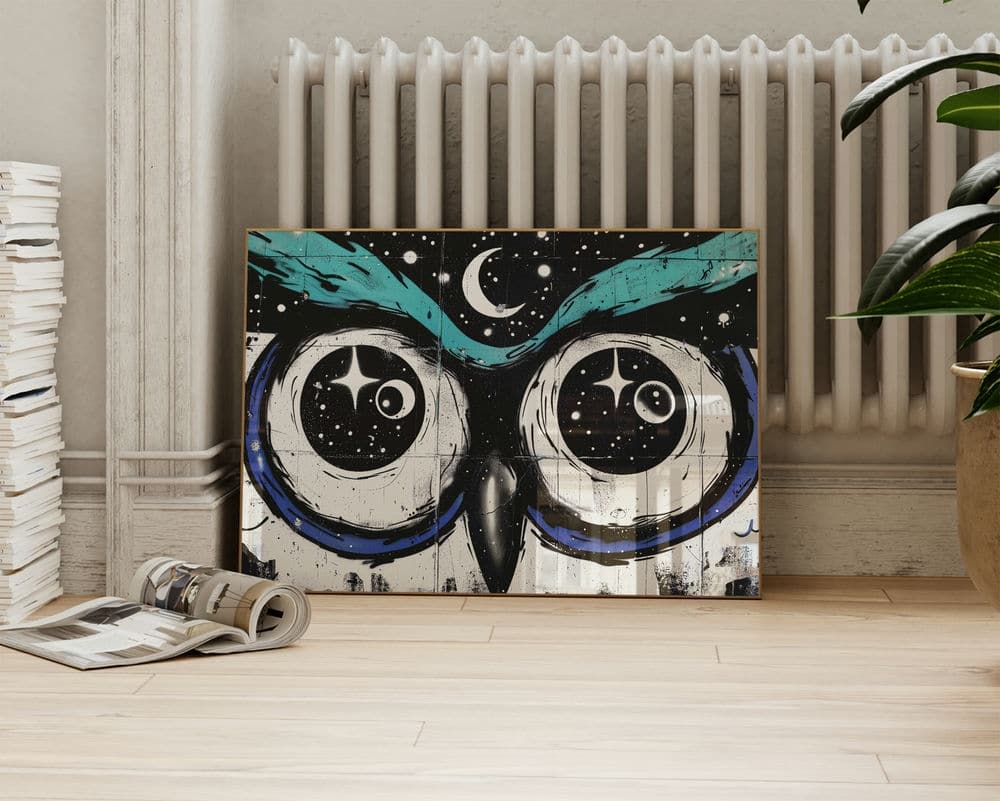 תמונה מעל הספה בסגנון גרפיטי ינשוף חלל