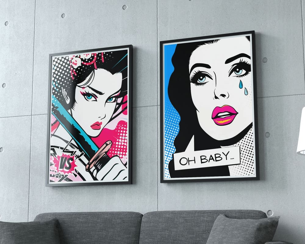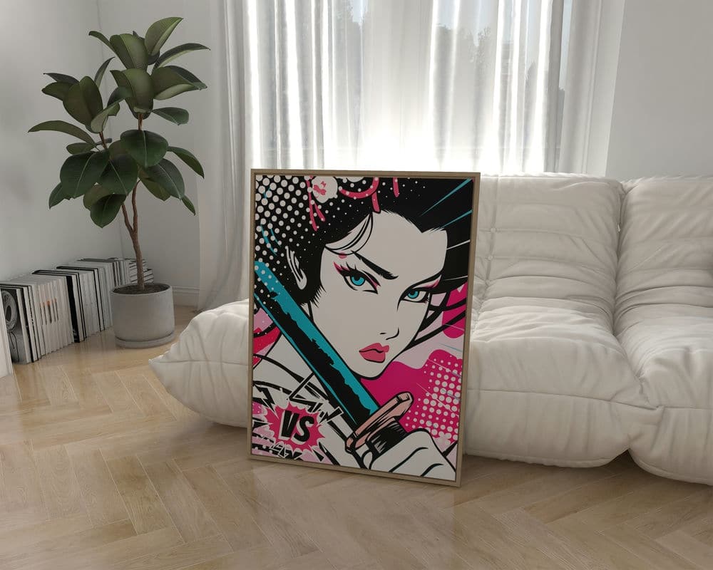תמונה לסלון בסגנון פופ ארט לוחמת גיישה עם קטאנה