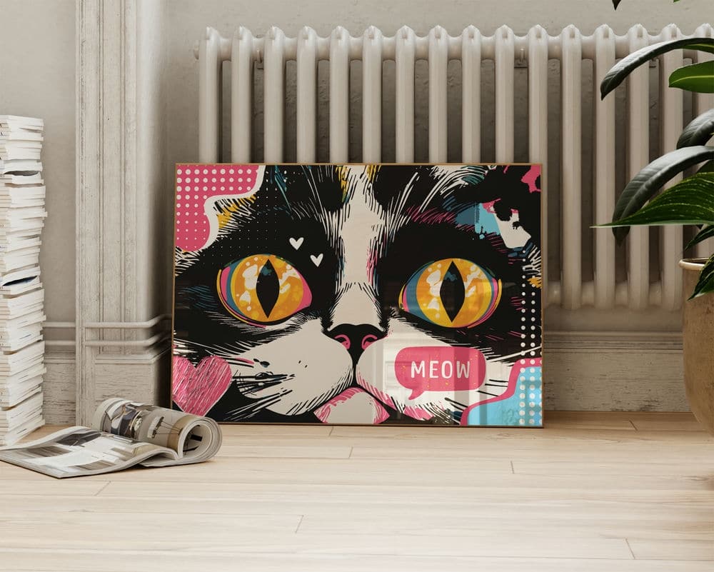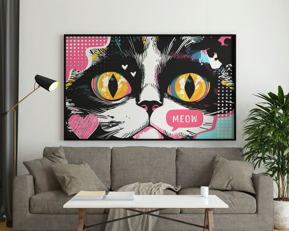 תמונה מעל הספה בסגנון פופ ארט עייני חתול