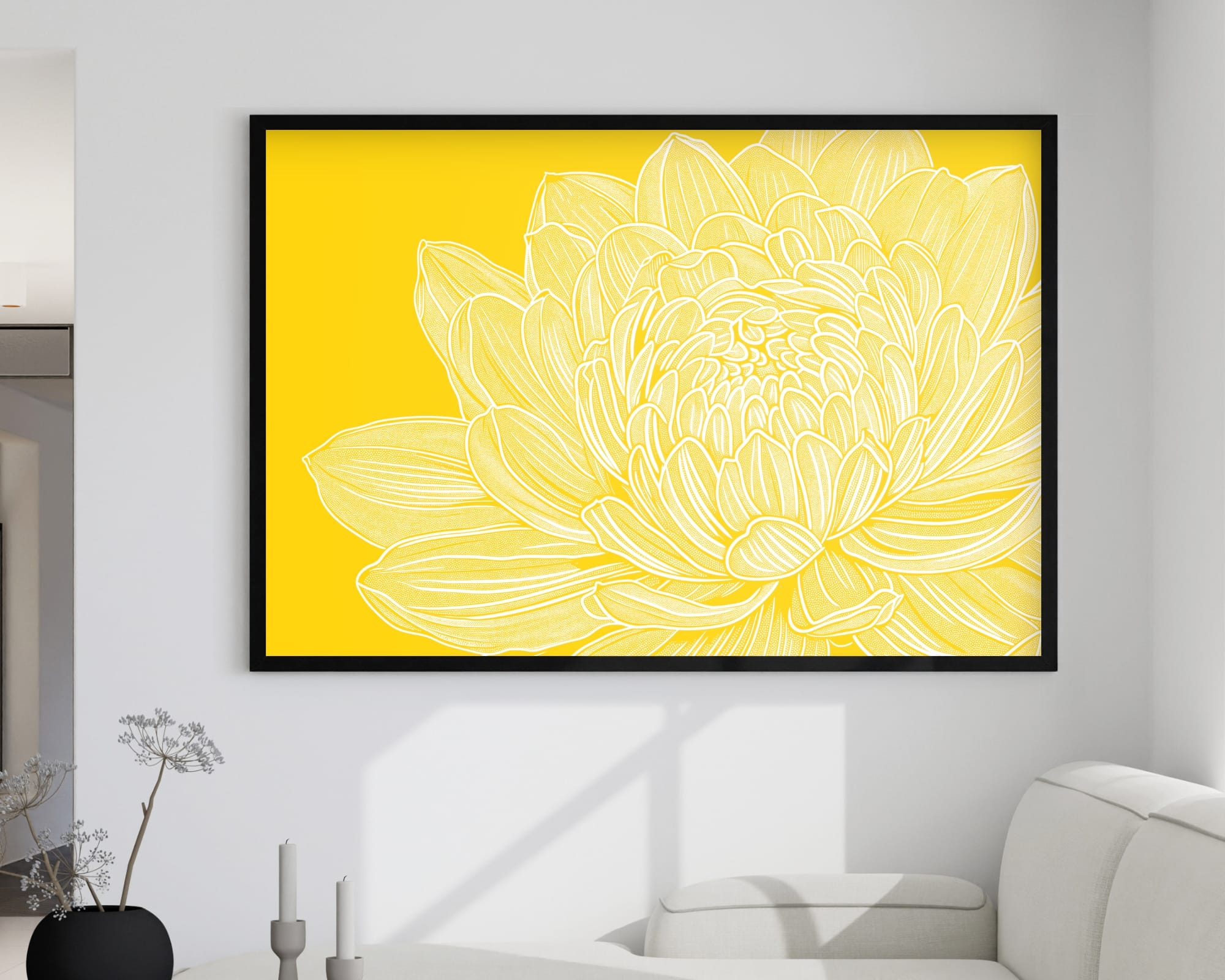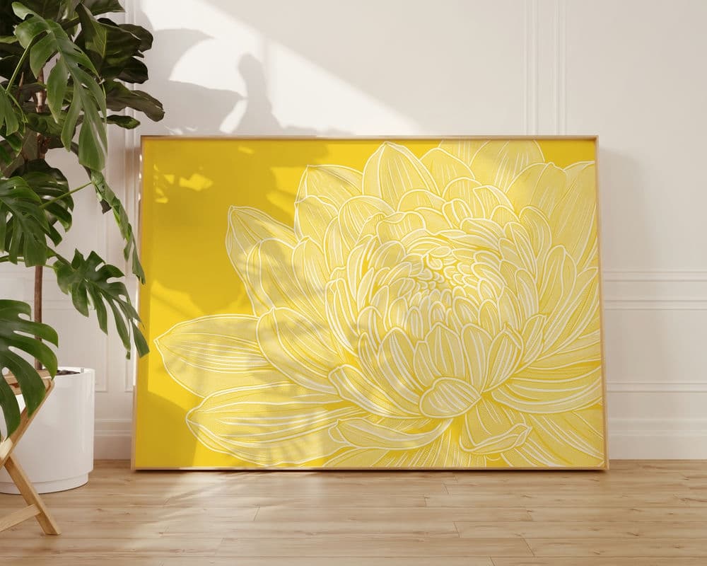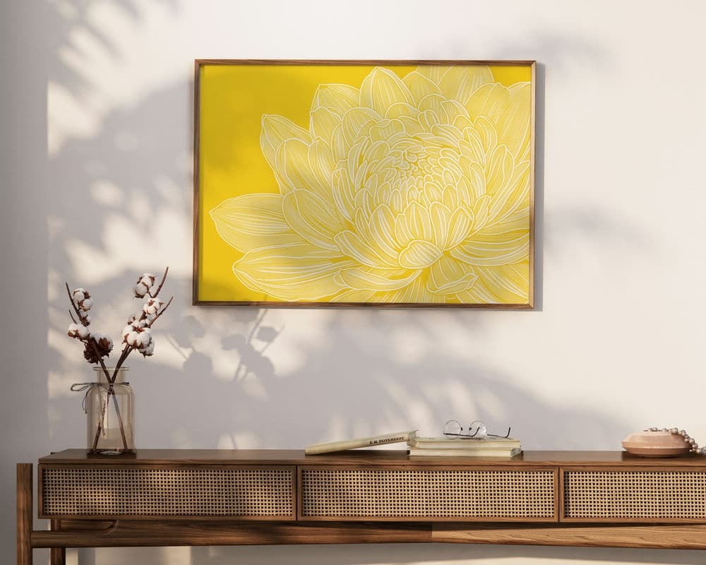 "זריחה צהובה בפריחה" היא תמונה לסלון המציגה פרח צהוב גדול ומרשים על רקע צהוב בהיר בסגנון מינימליסטי ונקי. עלי הכותרת הרכים והזוהרים יוצרים תחושה של חום, אנרגיה חיובית ופריחה טבעית. התמונה מתאימה במיוחד לסלון, לחדר שינה, למשרד או לחלל עבודה שזקוק לנקודת מוקד ויזואלית רכה ומזמינה. המוצר זמין כתמונה איכותית ללא מסגרת, כתמונה ממוסגרת מוכנה לתלייה, או כתמונת קנבס מתוחה על מסגרת עץ.
